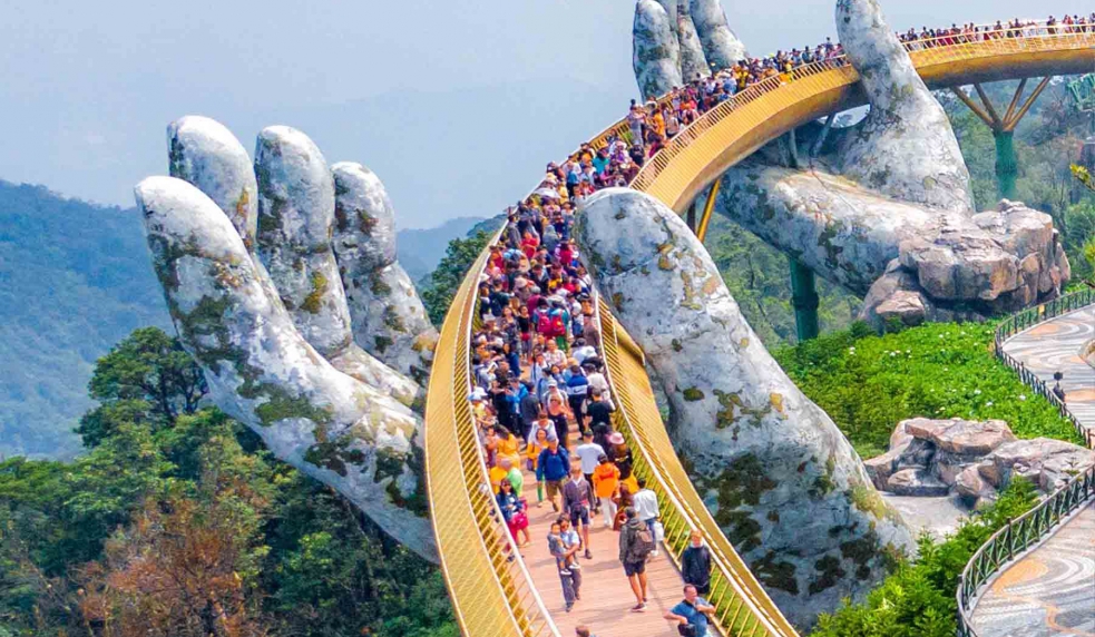 Cầu Vàng huyền thoại – biểu tượng du lịch Việt Nam, nơi hai bàn tay khổng lồ nâng dải lụa vàng giữa trời.