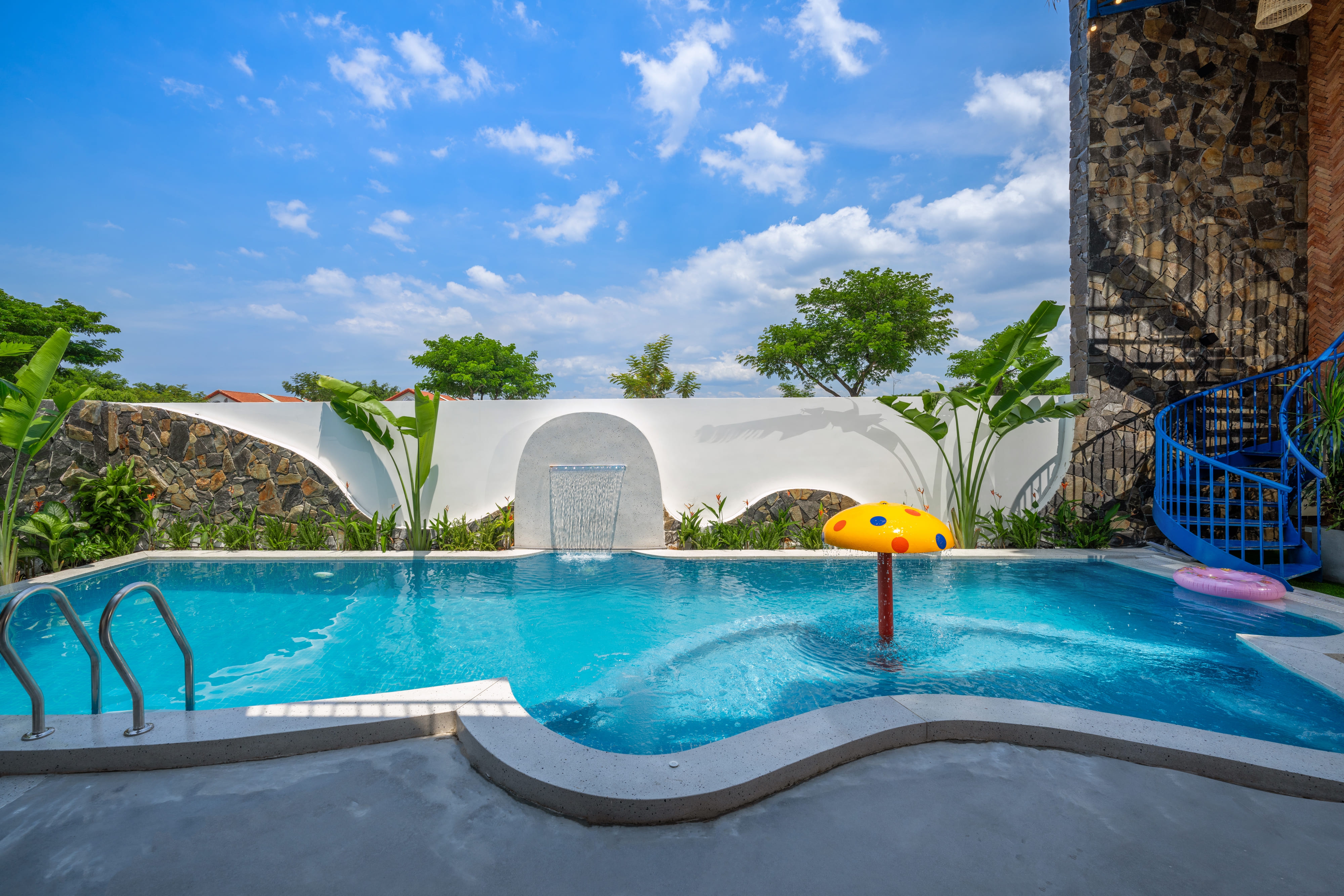 Hồ bơi muối khoáng riêng tư, sạch và an toàn cho cả trẻ em, được bao quanh bởi vườn cây xanh mát và khu BBQ ngoài trời – lý tưởng cho những bữa tiệc ấm cúng hay party cùng bạn bè.